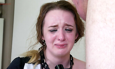 Ultra-cute slave whipped while crying